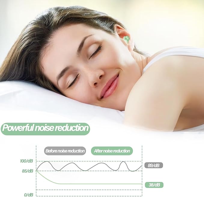 - 【High-Efficiency Noise Reduction】: Engineered with professional 38dB noise reduction technology, our earplugs effectively block out the majority of ambient noise, creating a quiet environment conducive to concentration and relaxation. Whether traveling, working, studying, or resting, our 38dB high-efficiency noise reduction enhances your quality of life by providing comfort and tranquility.